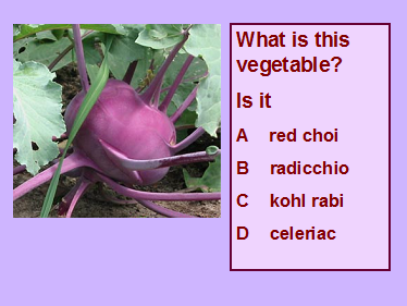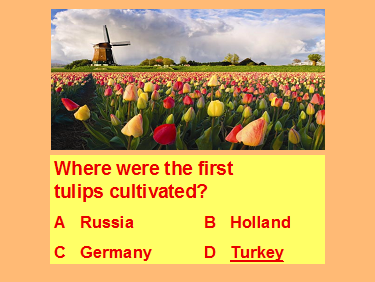 Below are some samples of quiz questions illustrating how they would appear in slides within a questions slideshow. The slides will be full screen size when the slideshow is played.